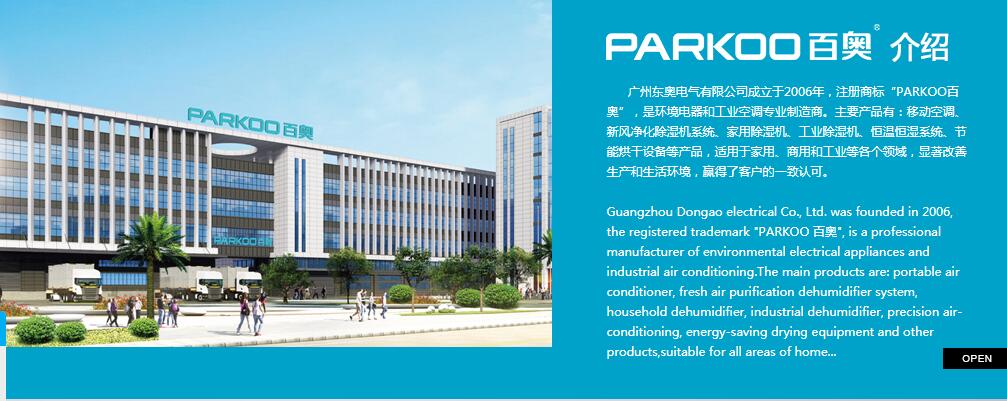 Guangzhou Dongao electrical Co., Ltd. was founded in 2006, the registered trademark "PARKOO 百奧", is a professional manufacturer of environmental electrical appliances and industrial air conditioning.The main products are: portable air conditioner, fresh air purification dehumidifier system, household dehumidifier, industrial dehumidifier, precision air-conditioning, energy-saving drying equipment and other products,suitable for all areas of home...